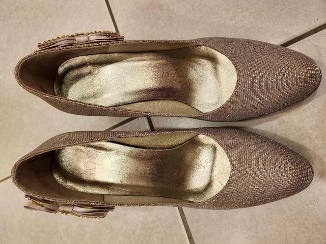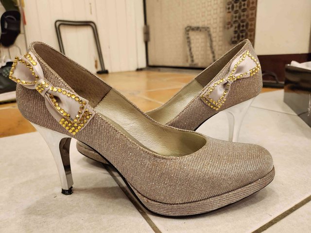二手(穿過兩三次) 6.5號GDC杏銀白高跟鞋