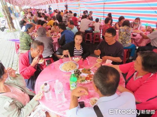 ▲台南市安平觀音亭盛大舉辦法會及「觀音佛誕平安宴」,中午平安宴席開240桌,2千多