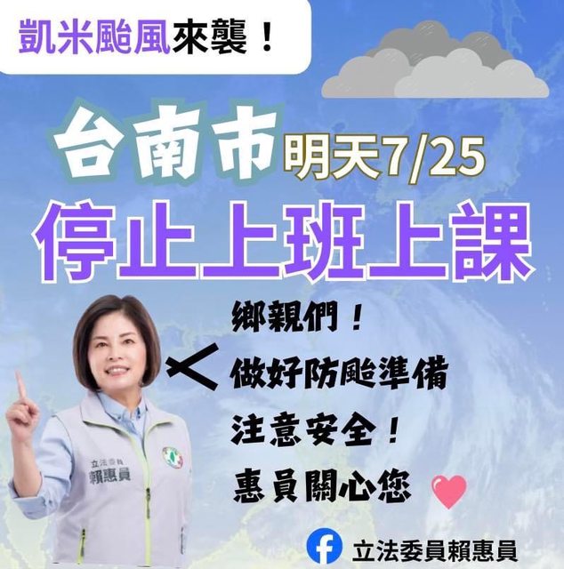標題[新聞] 台南市也宣布25日停班停課 「假圖卡」惡