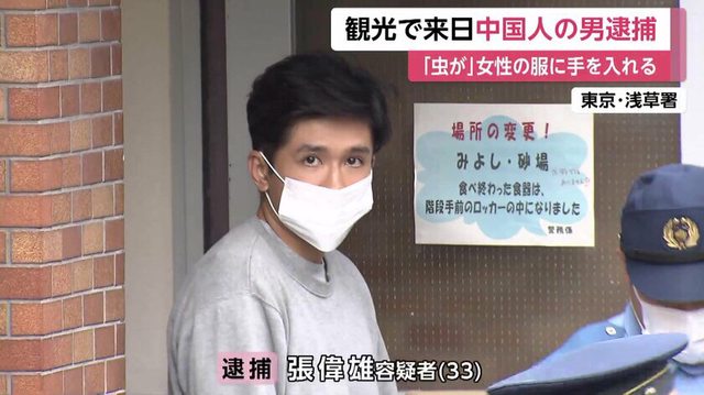 日本警方表示,一名去日本觀光的中國男子,因涉嫌對女性進行猥褻行為而在東京淺草被