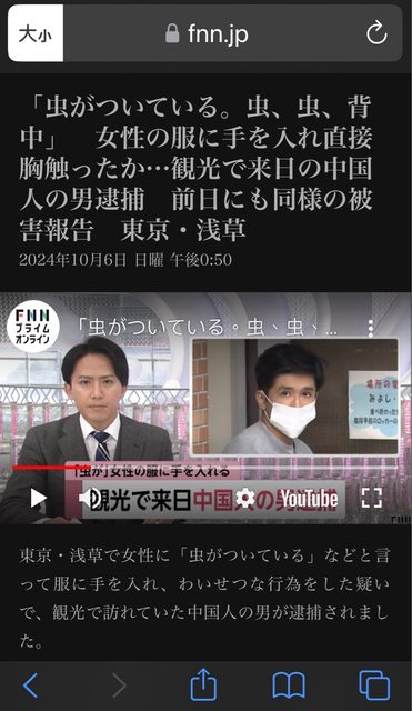標題[新聞] 中國噁男在東京淺草直接把手伸進女性衣服