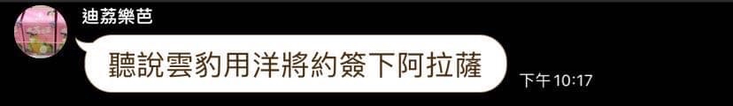 推 booker56 : 雲豹找阿拉薩當洋將喔?這樣變弱阿 08/02 12:10