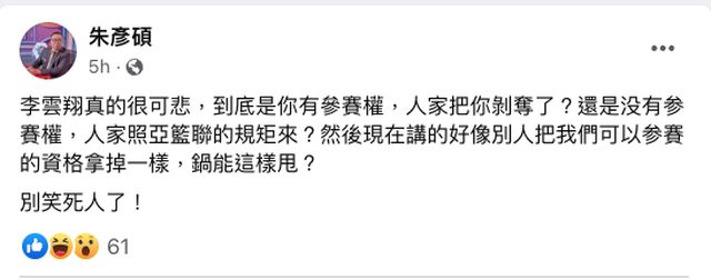 推 flyclud : 這次挺朱,籃協一開始的帶風向操作真的太難看了。 09/10 09:37