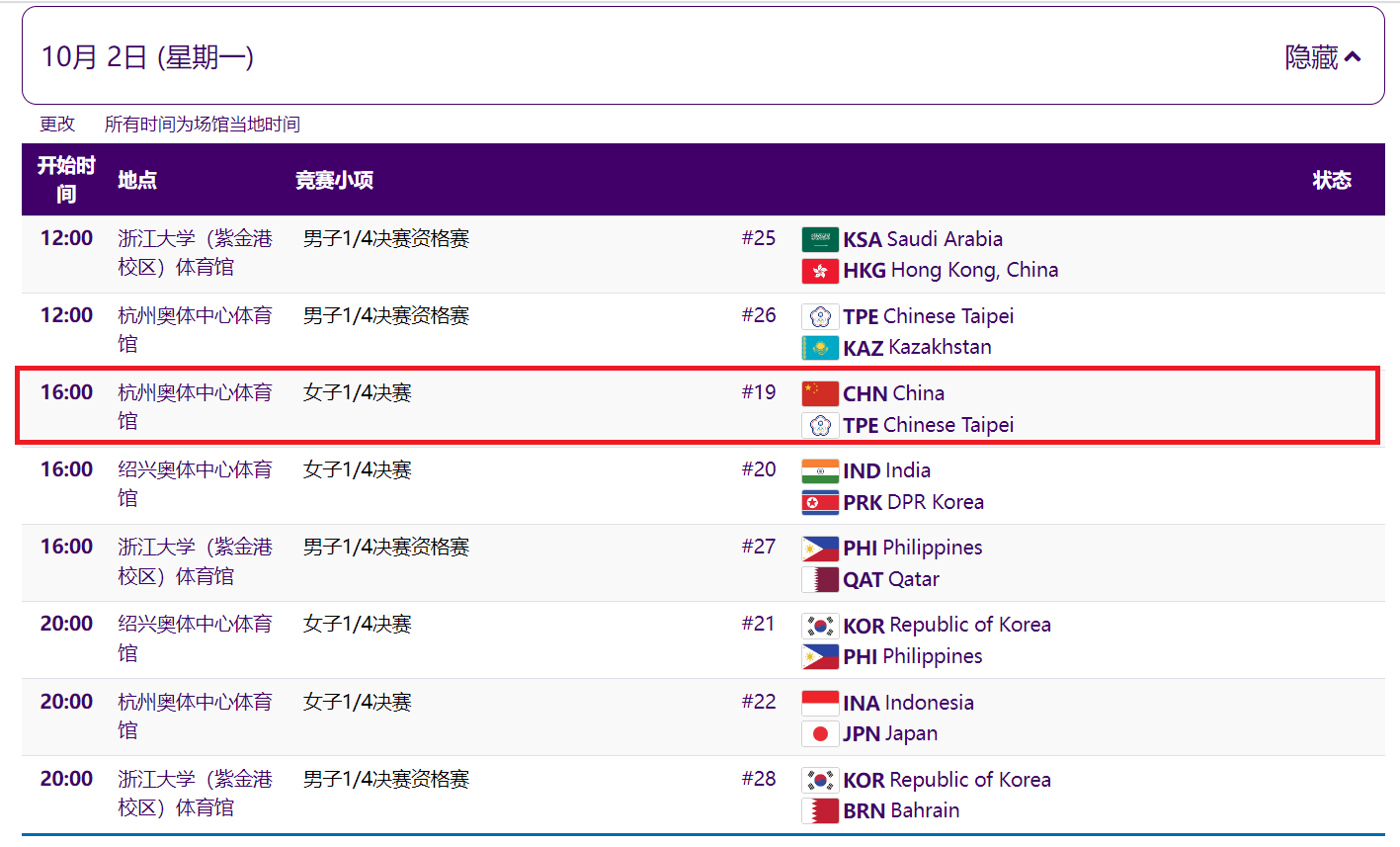Stadium: 杭州奧體中心體育館 Lead Changes: 4