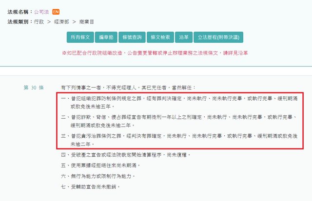 赦免後未逾二年,都不得擔任經理人,已擔任者當然解任。