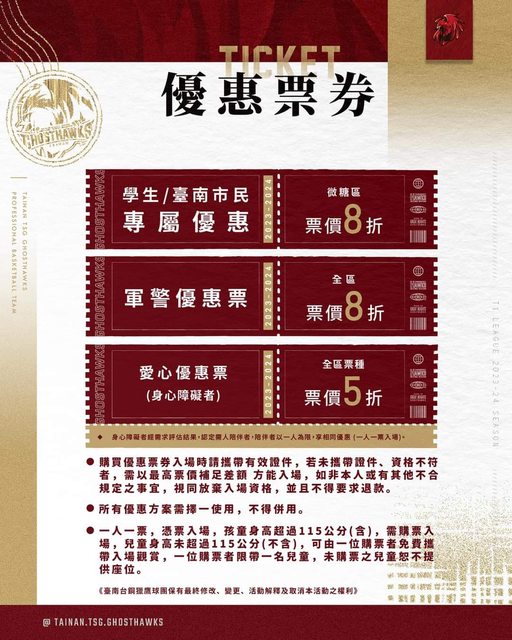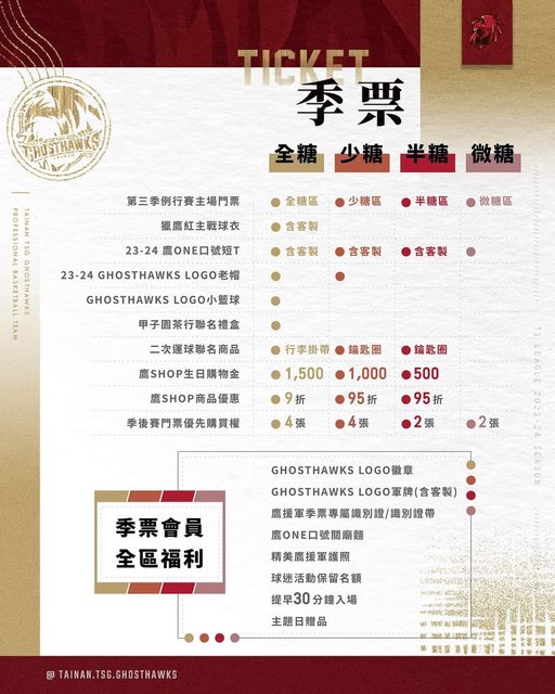 標題[情報] 台鋼獵鷹2023-24主場季票販售資訊