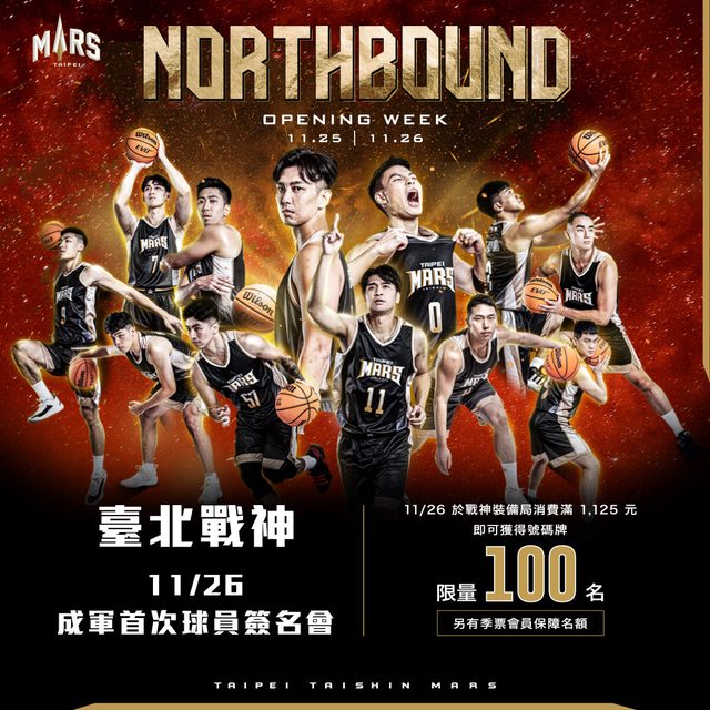 11月25日至26日臺北戰神「Northbound」開幕主題周門票現已開賣,可於FamiTicket全網購