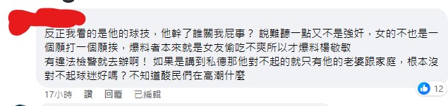 噓 ikohuge : 什麼叫只有對不起自己的老婆,哪些被騷擾的球迷和被 11/30 15:26