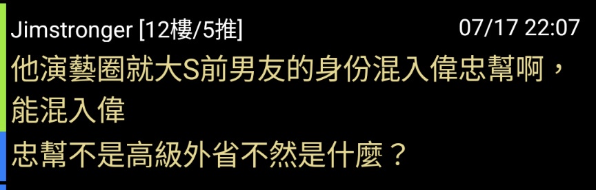→ Jimstronger : 出名堂」這件事就知道他背後一定有背景好不 07/17 22:31