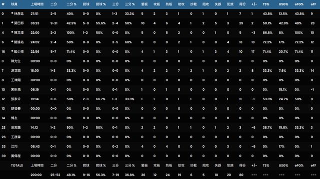 0林彥廷 27:51 2-5 1-3 0-0 2 3 5 1 0 1 0 1 7 9 1 44%