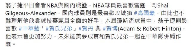 他表示希望有天能和賀丹賀博一起打中華隊。