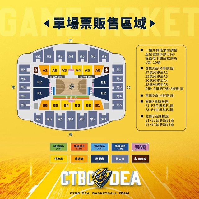 *新賽季新莊體育館2樓座位全面更新,座位略有調整,受影響之季票球迷球團將另行聯繫調整座位。