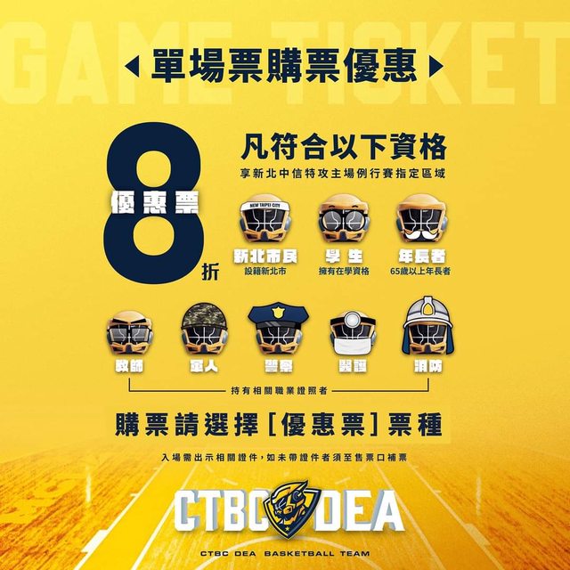 售票時程|將於近期公告,詳情請鎖定「新北中信特攻籃球隊」官方社群