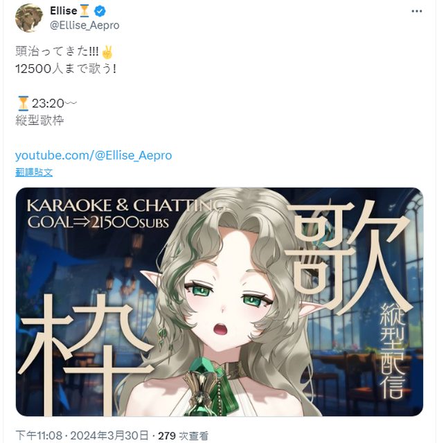 標題[Vtub] Ellise 歌回 目標21500訂閱 艾莉絲 Aepro あえぷろ