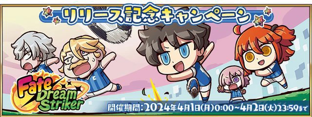【カルデア広報局より】 4月1日(月)に新作アプリ「Fate/Dream Striker」を配信いたします! 「Fate/Dream Striker」は「FGO」のサーヴァントたちが集う、超異聞サッカー! サーヴァントたちの猛攻をかいくぐり、ゴール目指して突き進むサッカーRPGです! App StoreおよびGoogle Playでの配信開始をお待ちください。 https://www.fate-go.jp/fate-ds/ https://i.imgur.com/xWuSSp5.png