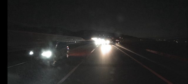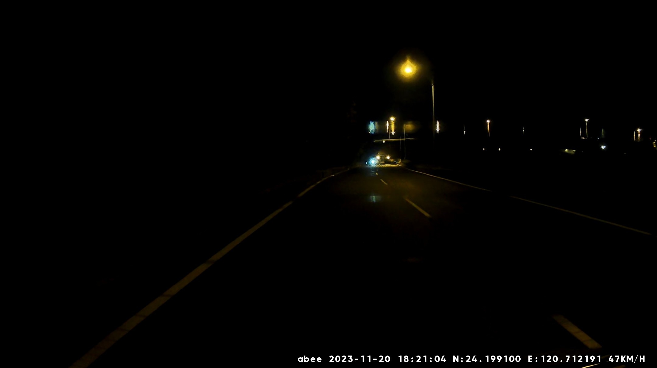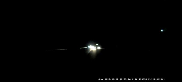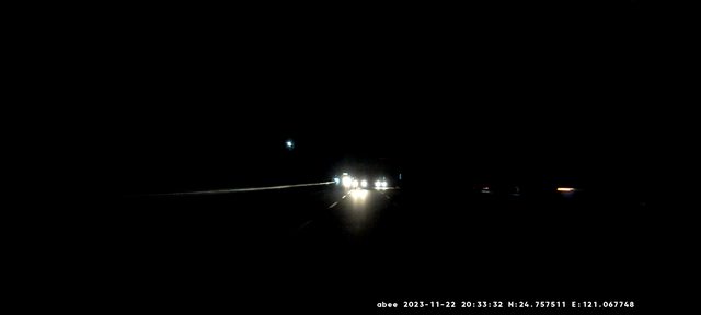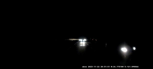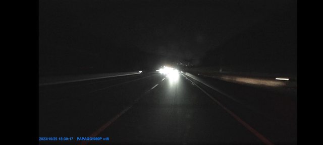 也看不到車道線, 如果旁邊有車經過, 只看得到車燈, 車身幾乎一片黑