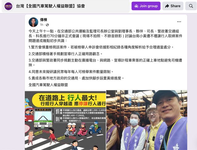 : 台灣【全國汽車駕駛人權益聯盟】協會理事長發文
