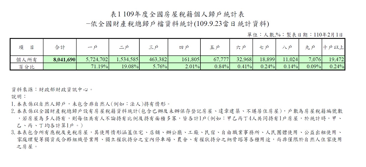 : 要看全國名下有房的統計,我之前有分享過