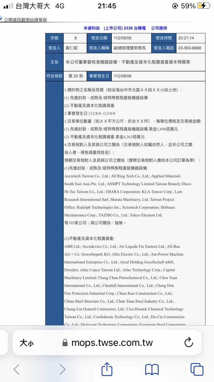 → yychiuchang: 個人私心台積電跑去高雄,幹死台中市政府,真的超大 08/08 20:22