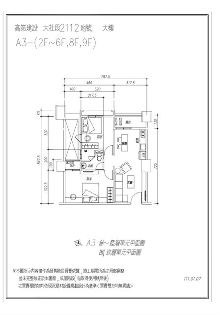 格局 : 2 房 2 廳 1 衛 2 陽台