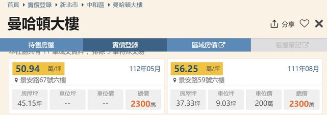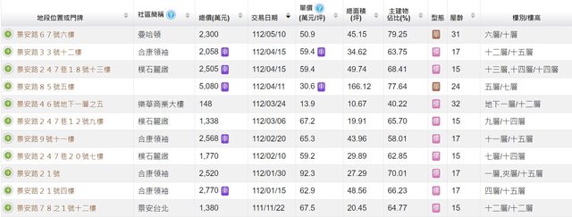 本物件附近地址實價登錄 :