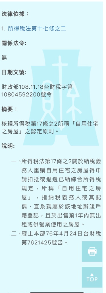 推 guesswhen: 那自住事實的認定國稅局寫清楚啊 住一天算不算? 08/24 11:55