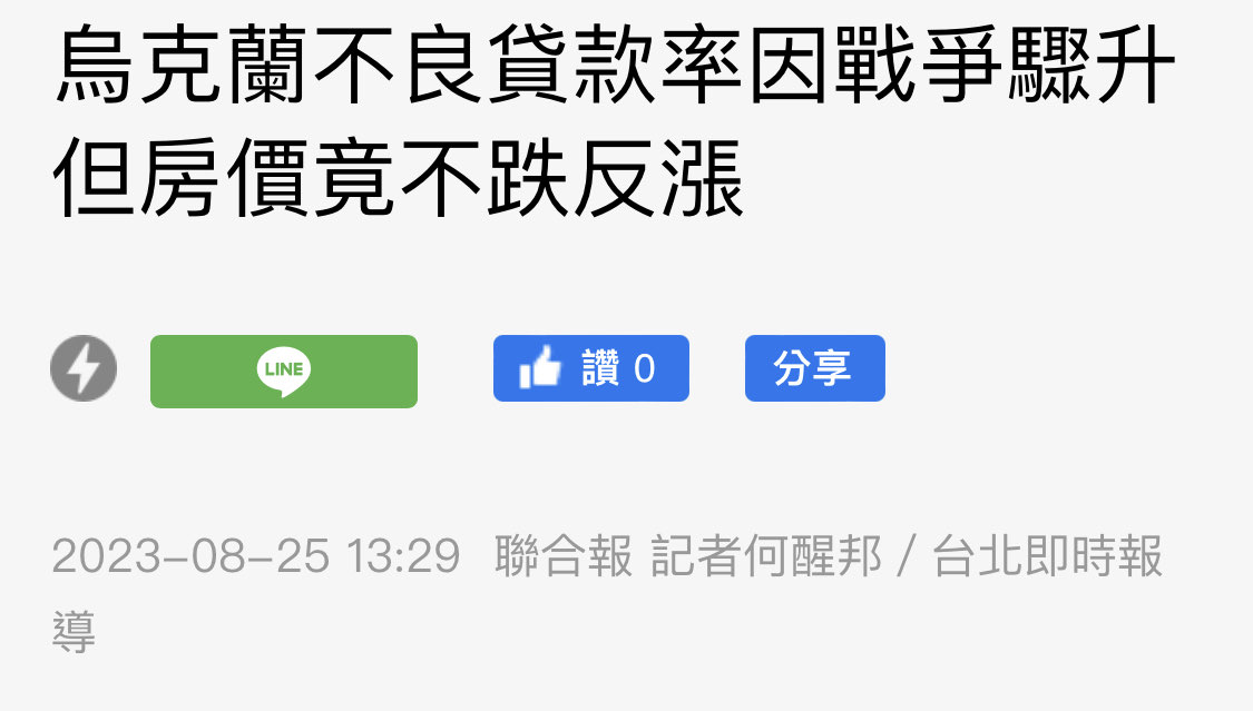 → s8752134: 拿烏克蘭舉例 基輔都在漲, 阿你都回了 08/30 18:03
