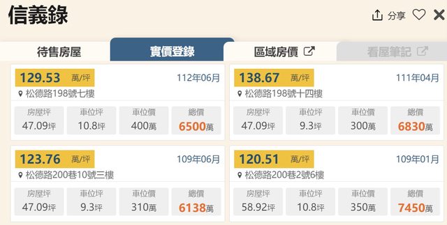 本物件附近地址實價登錄 :