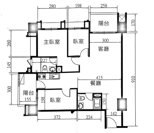 1. 前後陽台吃掉不少空間,導致客廳偏小