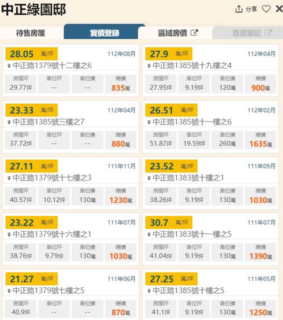 本物件附近地址實價登錄 :