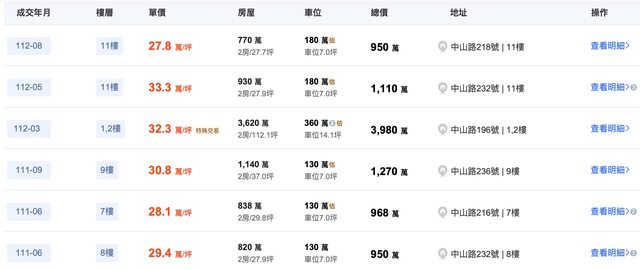 本物件附近地址實價登錄 :