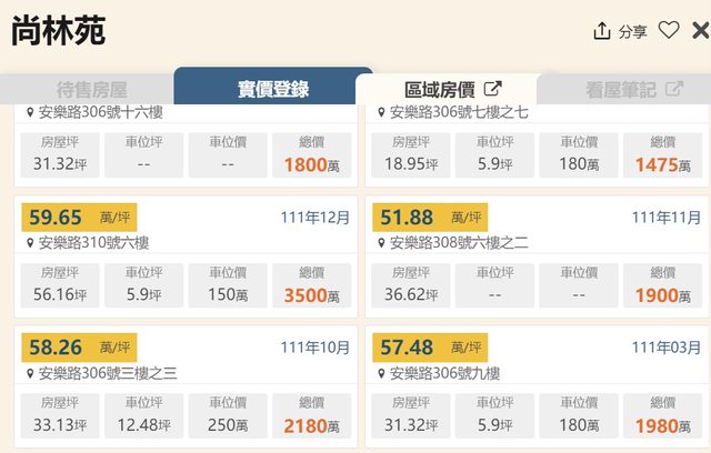 本物件附近地址實價登錄 :