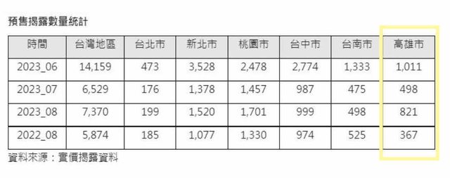 以目前揭露的預售件數來看,8月揭露件數7300餘件,較去年同期增加25%,主要是去年的