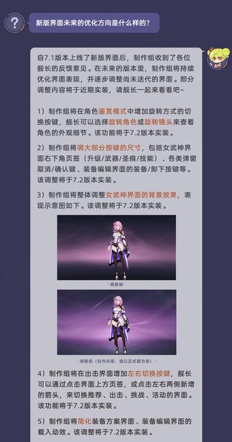 7. 罵聲很多的新UI會持續優化,7.2的鑑賞模式現在可以選擇旋轉角色(現有舊UI的方式)