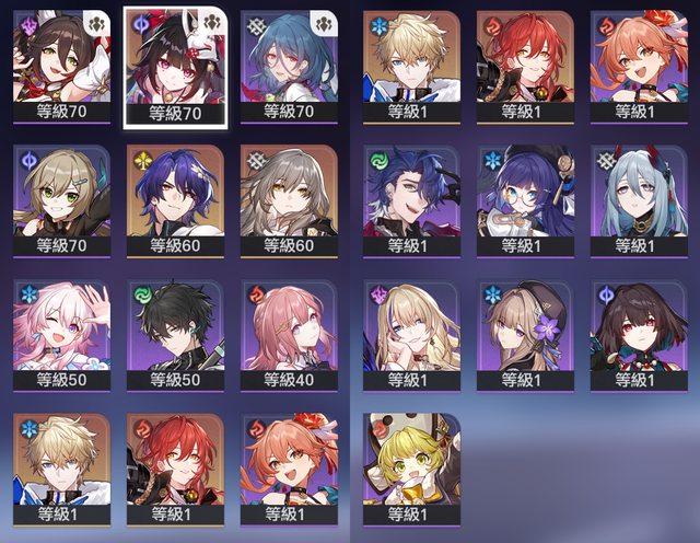 : (主隊伍外的角色除了寒鴉6命外都只有0-1命)