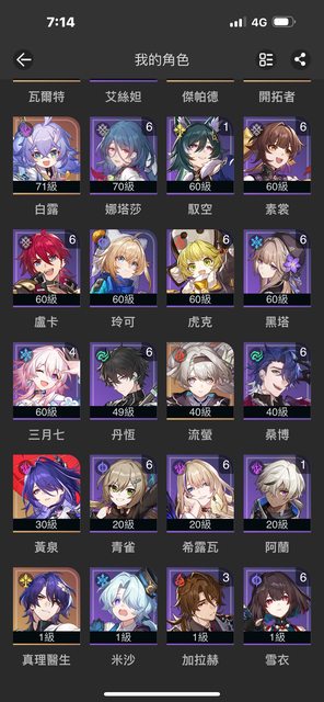 各位大佬安好 最近看流螢很火跟風回鍋一下 我應該是從霍霍後就沒玩了,但是偶爾會登入抽卡 下面是我的box和光錐 https://i.imgur.com/QPImkDA.png