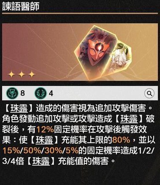 5. 諫語醫師12%機率觸發,觸發時會依照該次攻擊的目標全體給予附加傷害(全有全無),