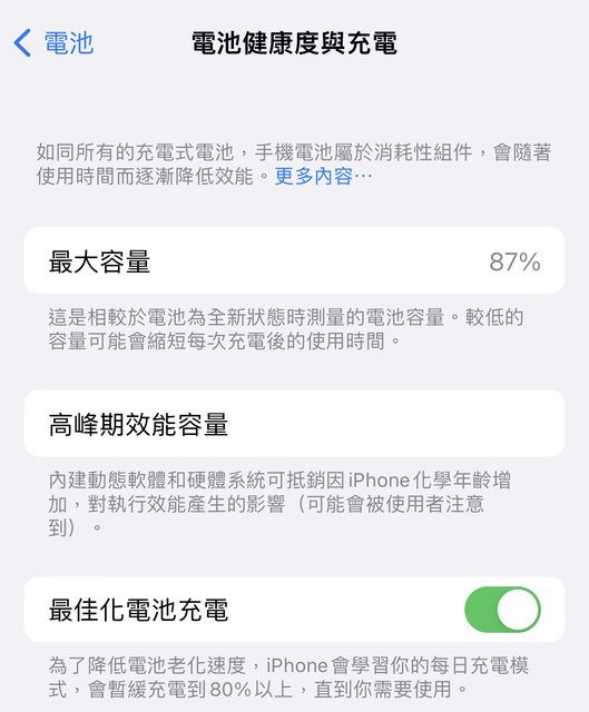 電池健康度87%(附圖,2023/9/18數值)。
