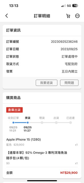 購買日期:9/25