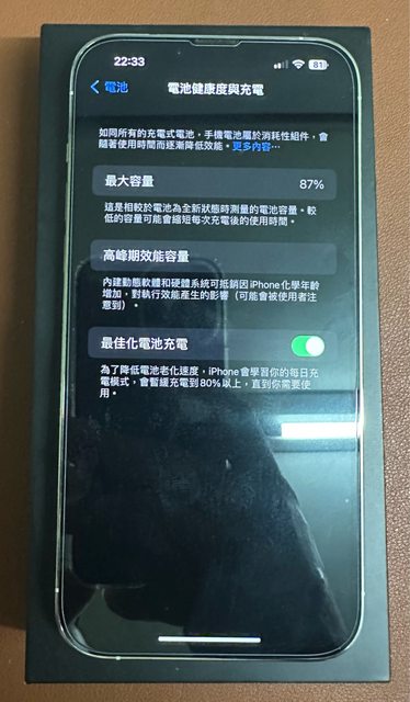 物品狀況:功能正常,電池健康度87%,有螢幕貼,鏡頭貼,一般保護殼,外觀良好僅充