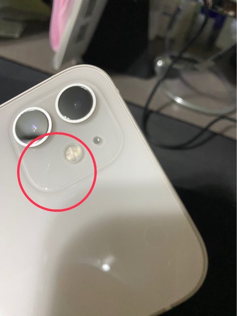 面也有一個小傷、充電孔旁邊也有、後方鏡頭無傷,但旁邊霧面有一小點刮痕
