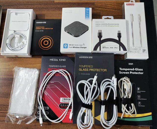 其他配件如下:有牌全新保護貼數張、MFI認證線全新CtoL2條、二手3條、二手AtoL1條,