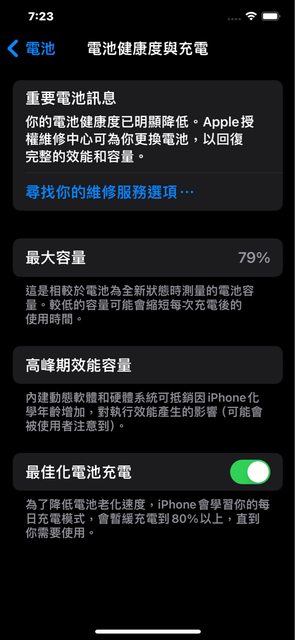 電池健康度79%