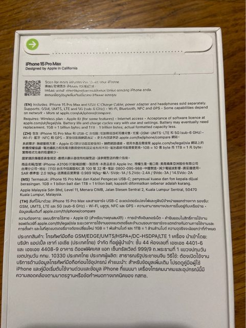 盒裝內含:iphone 15 pro max 與usb-c充電線