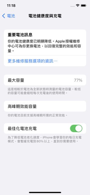 電池健康度77%