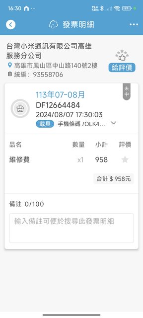 備註:2024/8月7日有回小米鳳山服務處自費更換電池