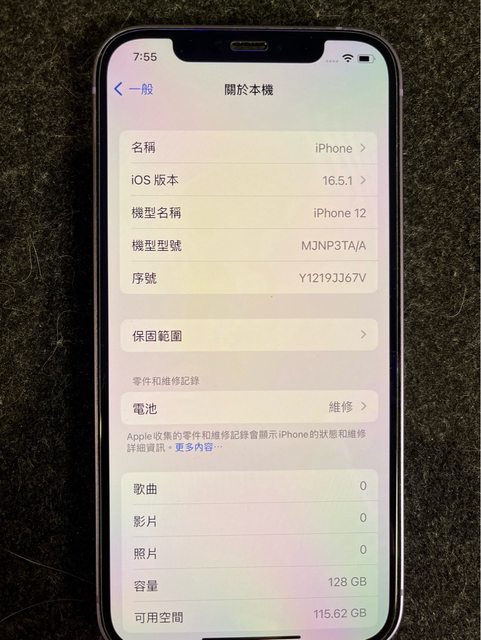 欲售物品:IPhone 12 128G 紫,電池77% 物品狀況:外觀9成新功能正常 購買來源:中華電信 盒裝內含:只有手機 購買日期:不詳 保固日期:過保 購入價格:2xxxx 欲售價格:NT$6800 交易方式:面交 實品圖片: