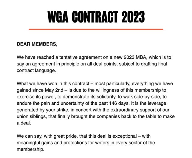 The WGA and AMPTP have officially reached a tentative deal on a new contract