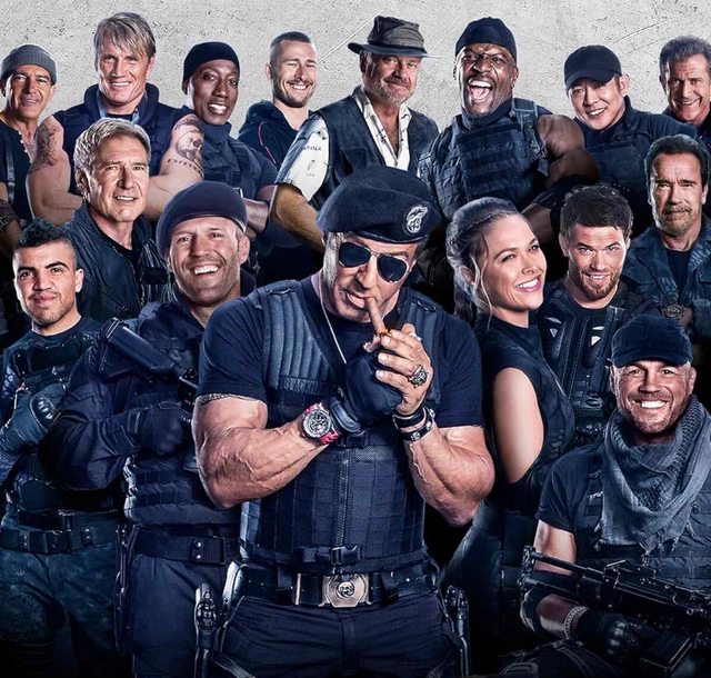 就是集結各路在全盛時期王不見王的老牌動作英雄,包括阿諾、布魯斯威利、羅禮士、李