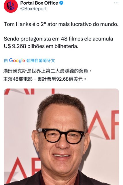 湯姆漢克斯是世界上第二大最賺錢的演員。